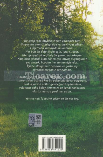 Hayatını Seç ve Hayatını Değiştir isimli kitaplarımdan sonra sizleri üçüncü kez bir yolculuğa davet ediyorum. Bırakın yarına notlar geleceğinizi aydınlatsın, yolunuzu daha kolay çizmenize ve kendi notlarınızı oluşturmanıza yardımcı olsun.
