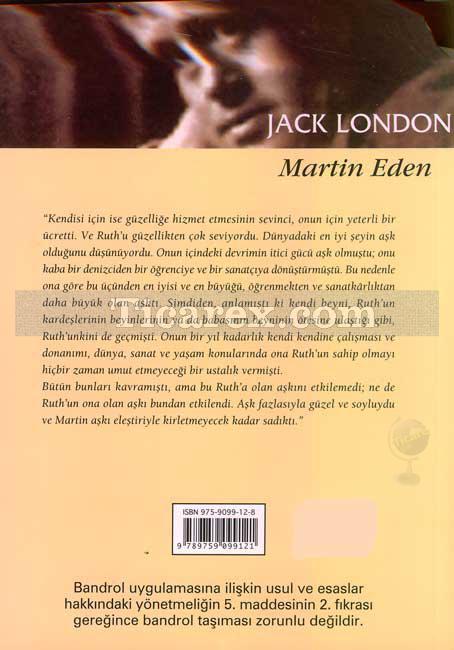 "Kendisi için ise güzelliğe hizmet etmesinin sevinci, onun için yeterli bir ücretti. Ve Ruth’u güzellikten çok seviyordu. Dünyadaki en iyi şeyin aşk olduğunu düşünüyordu. Onun içindeki devrimin itici gücü aşk olmuştu; onu kaba bir denizciden bir öğrenciye ve bir sanatçıya dönüştürmüştü. Bu nedenle ona göre bu üçünden en iyisi en büyüğü, öğrenmekten ve sanatkarlıktan daha büyük olan aşktı. Şimdiden, anlamıştı ki kendi beyni, Ruth'un kardeşlerinin beyinlerinin ya da babasının beyninin ötesine ulaştığı gibi, Ruth'unkini de geçmişti. Onun bir yıl kadarlık kendi kendine çalışması ve donanımı, dünya, sanat ve yaşam konularında ona Ruth'un sahip olmayı hiçbir zaman umut etmeyeceği bir ustalık vermişti.