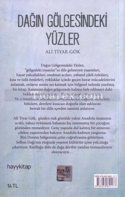 Dağın Gölgesindeki Yüzler, "gölgedeki insanlar"ın dile gelmeyen yaşamları, hayat yolculukları, onulmaz acıları, yabanıl çileli öyküleri, kısa ve özlü ömürleri, yokluklar içinde geçen hayat mücadelelerini anlamak, onların sesine ses katmak için belgesel tadında yazılmış bir kitap. Kalemini dağın gölgesinde kalmış fark edilmeyi dahi beklememiş insanların dünyasına çeviriyor yazar. Ve o insanların tutkularını sevdalıklarını, dağlara, nehirlere, bitkilere, derelere kısacası doğayla olan aşklarını berrak bir dille içerden samimi anlatıyor.