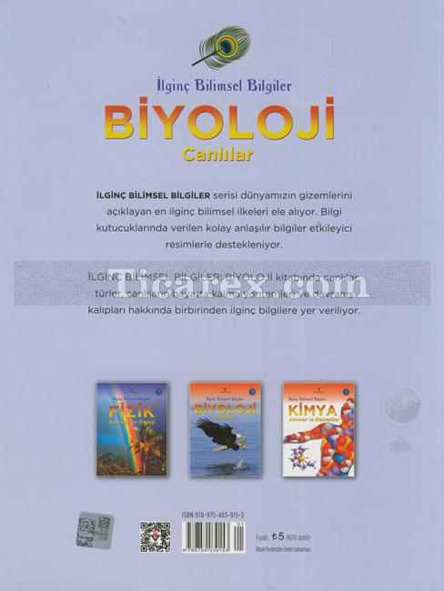 İlginç BİLİMSEL BİLGİLER serisi dünyamızın gizemlerini açıklayan en ilginç bilimsel ilkeleri ele alıyor. Bilgi kutucuklarında verilen kolay anlaşılır bilgiler etkileyici resimlerle destekleniyor. İlginç Bilimsel Bilgiler: Biyoloji kitabında canlılar, türler, canlıların hayatta kalma yöntemleri ve davranış kalıpları hakkında birbirinden ilginç bilgilere yer veriliyor.