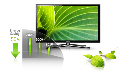 Samsung LED TV’ler, gözlerinizi korumayı amaçladığı kadar dünyayı da korumayı hedefliyor. Çevre dostu malzemeler kullanılan 2009 Energy Star Uyumlu LED TV’lerimiz, geçen yılki modellere kıyasla %50 daha az güç tüketiyor. Böylece, atmosfere daha az karbondioksit salındığını ve enerjiden tasarruf ettiğinizi bilerek rahatlayabilirsiniz. Bu işten yalnızca gezegenimiz değil faturalarınız da kazançlı çıkacak.