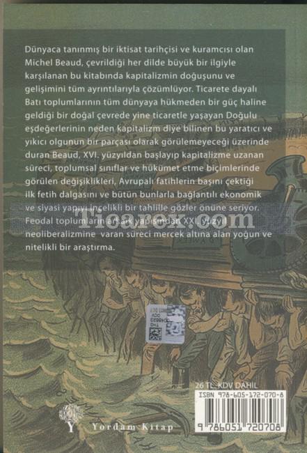 Dünyaca tanınmış bir iktisat tarihçisi ve kuramcısı olan Michel Beaud, çevrildiği her dilde büyük bir ilgiyle karşılanan bu kitabında kapitalizmin doğuşunu ve gelişimini tüm ayrıntılarıyla çözümlüyor. Ticarete dayalı Batı toplumlarının tüm dünyaya hükmeden bir güç haline geldiği bir doğal çevrede yine ticaretle yaşayan Doğulu eşdeğerlerinin neden kapitalizmin diye bilinen bu yaratıcı ve yıkıcı olgunun bir parçası olarak görülemeyeceği üzerinde duran Beaud, XVI. yüzyıldan başlayıp kapitalizme uzanan süreci, toplumsal sınıflar ve hükümet etme biçimlerinde görülen değişiklikleri, Avrupalı fatihlerin başını çektiği ilk fetih dalgasını ve bütün bunlarla bağlantılı iktisadi ve siyasi yapıyı İncelikli bir tahlille gözler önüne seriyor. Feodal toplumların arkaik yapısından sanayi sonrası dünyanın dört taraftan çevrelenmiş güncelliğine varan yoğun ve özellikli bir araştırma.
