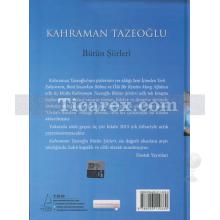 "Kahraman Tazeoğlu Bütün Şiirleri", siz değerli okurlara arşiv niteliğinde, kalın kapaklı ve ciltli olarak sunulmuştur.
