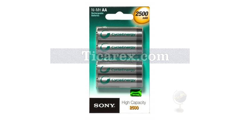 Sony Şarj Edilebilir Yüksek Kapasiteli Ni-MH Piller 2500 mAh - AA boyutu - 4'lü blister pakette. Çok güç tüketen, yüksek teknoloji ürünü cihazlar için ideal: Dijital fotoğraf makineleri, MP3 çalarlar, oyuncaklar.